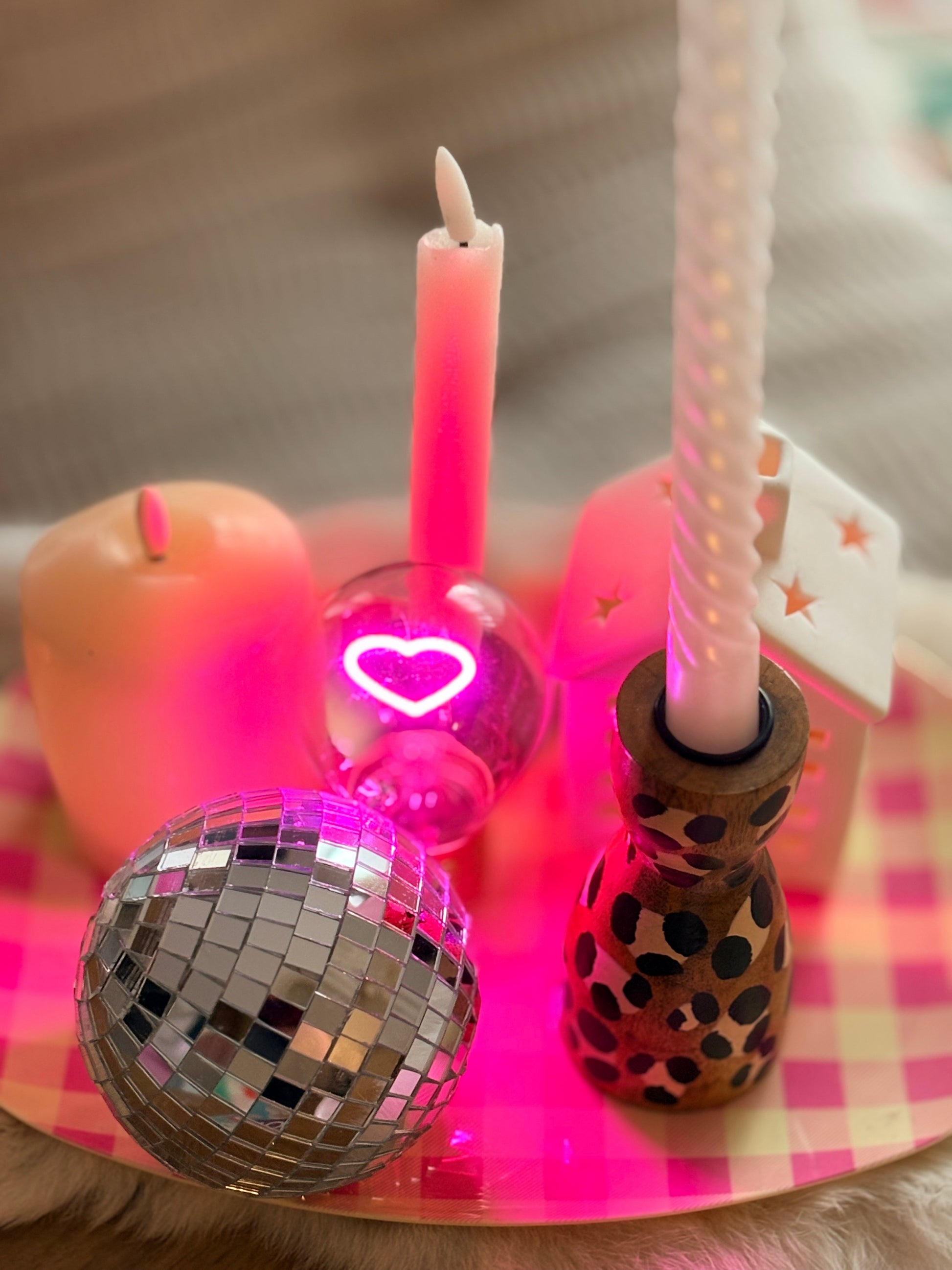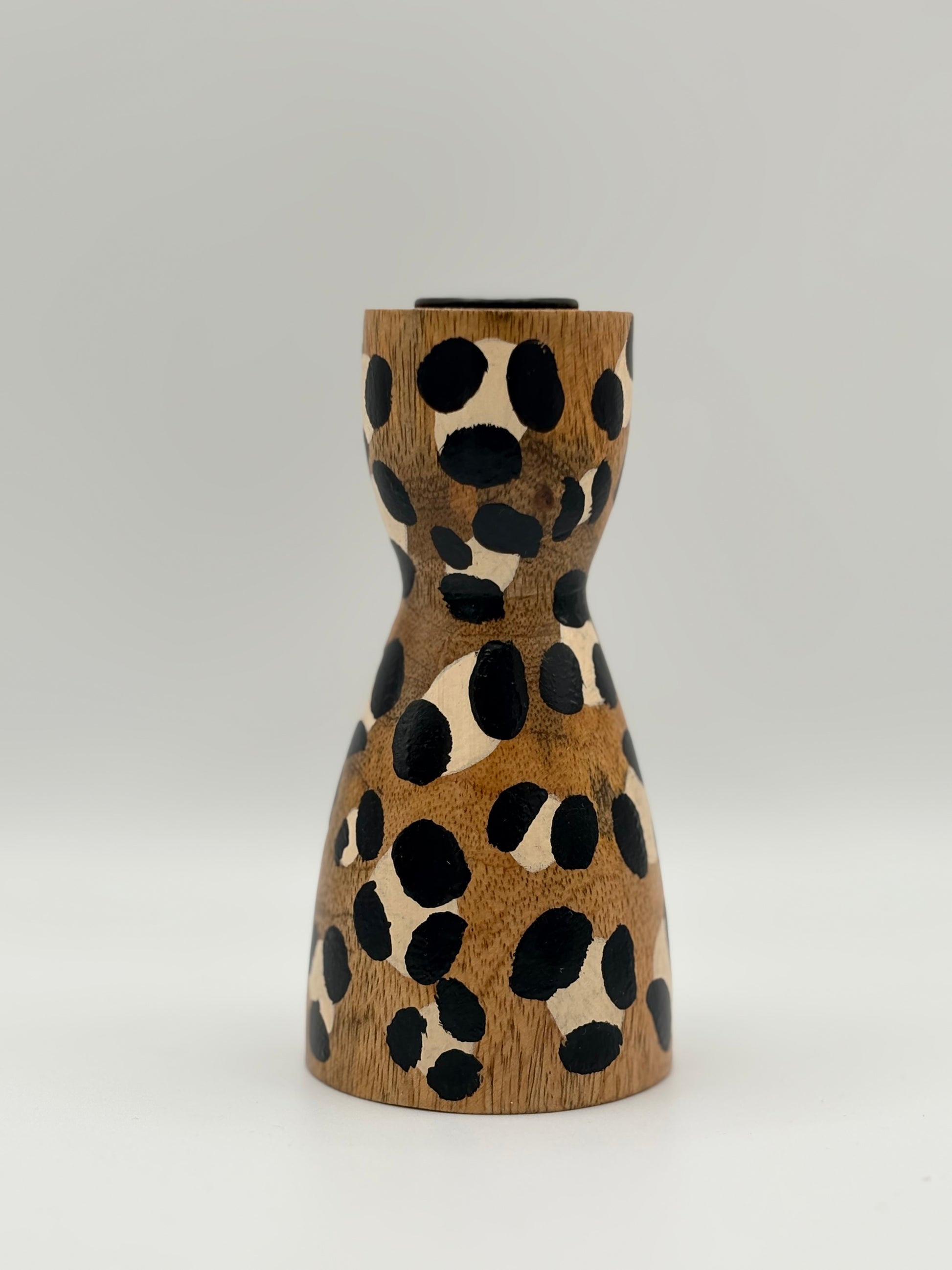 Bougeoir en bois au motif léopard, fait main, qui apporte une touche moderne et sauvage à votre décoration intérieure.